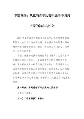 专题党课:从党的百年历史中感悟中国共产党的初心与使命.docx