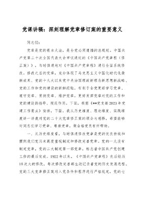 党课讲稿:深刻理解党章修订案的重要意义.docx