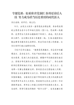 专题党课:松柏常青党旗红 新功更待后人续 努力成为堪当历史重任的时代新人.docx