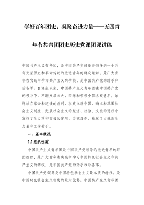 学好百年团史,凝聚奋进力量——五四青年节共青团团史历史党课团课讲稿.docx