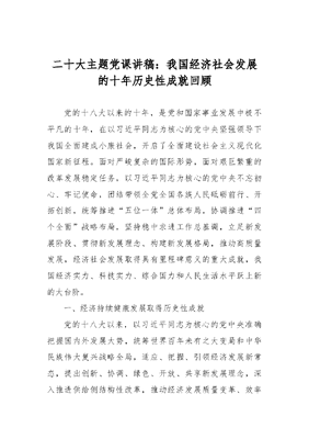 二十大主题党课讲稿:我国经济社会发展的十年历史性成就回顾.docx