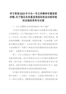 学习贯彻2023年中央一号文件精神专题党课讲稿.docx