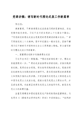 党课讲稿:谱写新时代理论武装工作新篇章.docx