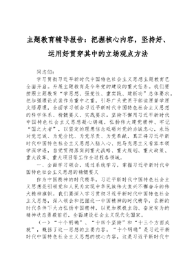 主题教育辅导报告:把握核心内容,坚持好、运用好贯穿其中的立场观点方法.docx