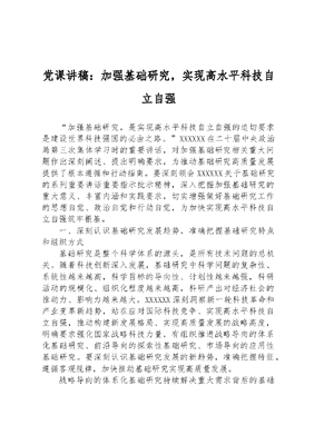 党课讲稿:加强基础研究,实现高水平科技自立自强.docx
