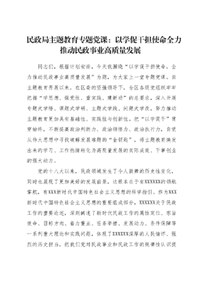 民政局主题教育专题党课 :以学促干担使命全力推动民政事业高质量发展.docx
