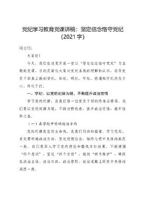 党纪学习教育党课讲稿:坚定信念恪守党纪.docx