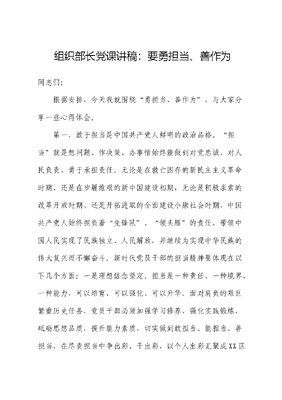 组织部长党课:党员干部要勇担当、善作为.docx
