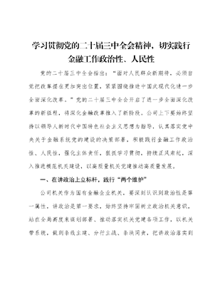 全会精神宣讲党课:学习贯彻党的二十届三中全会精神,切实践行金融工作政治性、人民性.docx