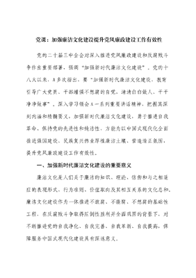 廉政党课:加强廉洁文化建设 提升党风廉政建设工作有效性.docx
