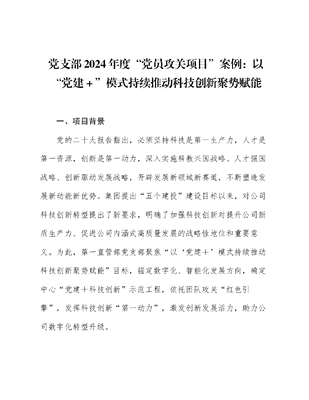 党支部“党员攻关项目”汇报稿:以“党建+”模式持续推动科技创新聚势赋能.docx