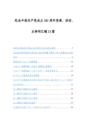 (13篇)纪念中国共产党成立101周年党课、讲话、主持词汇编.docx
