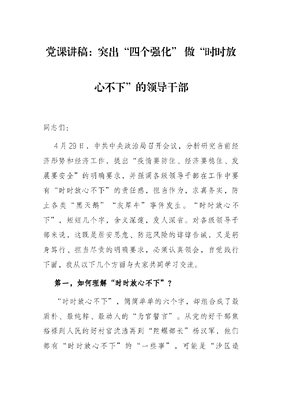 党课讲稿:突出“四个强化” 做“时时放心不下”的领导干部.docx