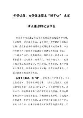 党课讲稿:念好强基固本“四字诀” 永葆清正廉洁的政治本色.docx