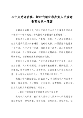 二十大党课讲稿:新时代新征程办好人民满意教育的根本遵循.docx