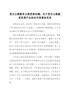 党内主题教育主题党课讲稿:关于党内主题教育思想产生的时代背景的思考.docx