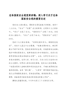总体国家安全观党课讲稿:深入学习关于总体国家安全观的重要论述.docx