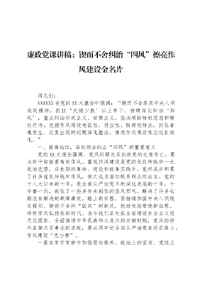 廉政党课讲稿:锲而不舍纠治“四风”+擦亮作风建设金名片.docx