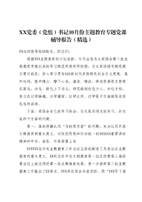 XX党委(党组)书记10月份主题教育专题党课辅导报告(精选).docx