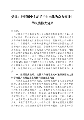 党课:把握历史主动,勇于担当作为,奋力推进中华民族伟大复兴.docx
