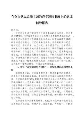 在全市党办系统主题教育专题读书班上的党课辅导报告.docx