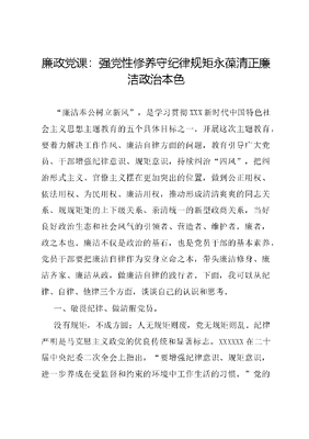 廉政党课:强党性修养守纪律规矩 永葆清正廉洁政治本色.docx