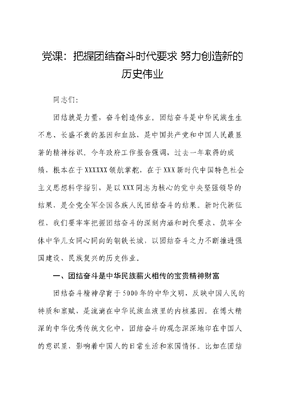 党课:把握团结奋斗时代要求 努力创造新的历史伟业.docx
