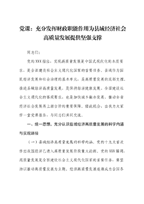 党课:充分发挥财政职能作用 为县域经济社会高质量发展提供坚强支撑.docx