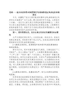 党课——充分认清形势+时刻警钟长鸣+持续推进正风肃纪在末端落实.docx