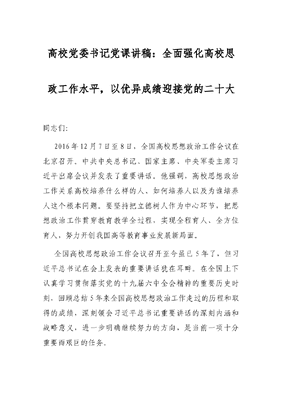 高校党委书记党课讲稿:全面强化高校思政工作水平,以优异成绩迎接党的二十大.docx
