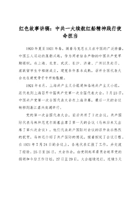 红色故事讲稿:中共一大续航红船精神践行使命担当.docx