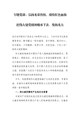 专题党课:弘扬光荣传统、赓续红色血脉 把伟大建党精神继承下去、发扬光大.docx