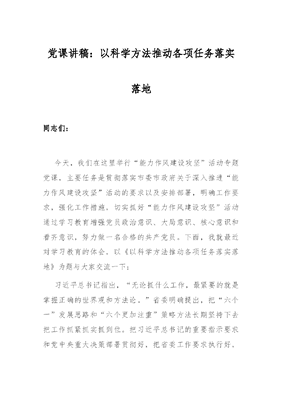 党课讲稿:以科学方法推动各项任务落实落地.docx