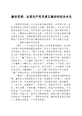 廉洁党课:永葆共产党员清正廉洁的政治本色.docx