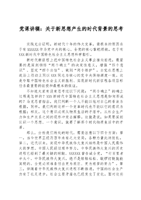 党课讲稿:关于新思想产生的时代背景的思考.docx