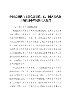 中国式现代化主题党课讲稿:以中国式现代化全面推进中华民族伟大复兴.docx