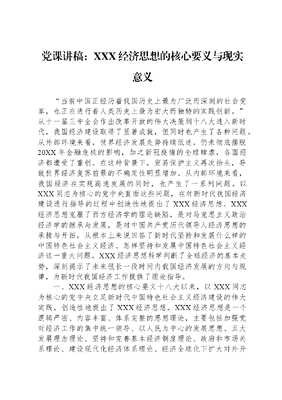 党课讲稿:习近平经济思想的核心要义与现实意义.docx