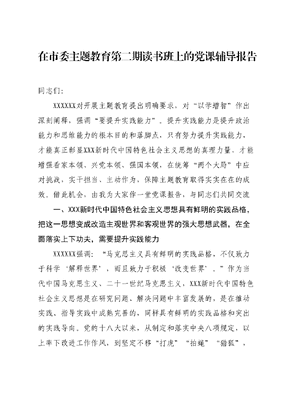 在市委主题教育第二期读书班上的党课辅导报告.docx