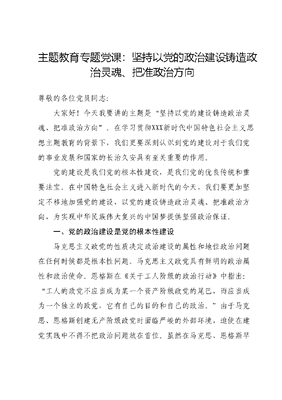 主题教育专题党课:坚持以党的政治建设铸造政治灵魂、把准政治方向.docx