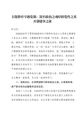 主题教育专题党课:筑牢政治之魂 厚植党性之基开创建事之业.docx