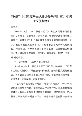 新修订《中国共产党纪律处分条例》宣讲提纲(仅供参考).docx