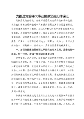 党纪党课ppt+讲稿:为推进党的伟大事业提供坚强纪律保证.docx