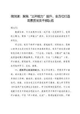 微党课:聚焦“三种能力”提升,全方位打造高素质党员干部队伍.docx