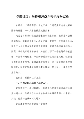 党课:坚持艰苦奋斗 善于攻坚克难.docx