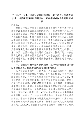 二十届三中全会《决定》宣讲解读提纲:突出重点,注重改革实效,推动改革不断取得新突破,开创中国式现代化建设新局面.docx