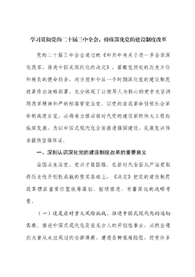 全会精神宣讲稿:学习贯彻党的二十届三中全会,持续深化党的建设制度改革.docx
