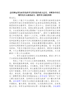 二十届三中全会解读稿:总结和运用全面深化改革宝贵经验的重大意义,不断为中国式现代化注入强劲动力、提供有力制度保障.docx