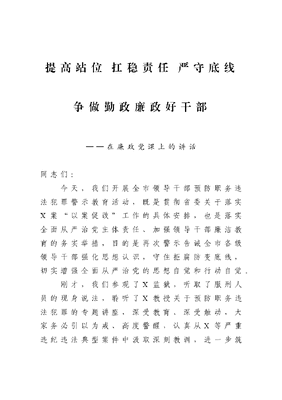 廉政党课:提高站位 扛稳责任 严守底线 争做勤政廉政好干部.docx