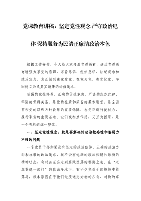 党课教育讲稿:坚定党性观念 严守政治纪律 保持服务为民清正廉洁政治本色.docx