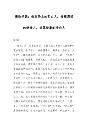 廉政党课:做政治上的明白人,情趣高尚的健康人,崇德尚廉的清白人.docx